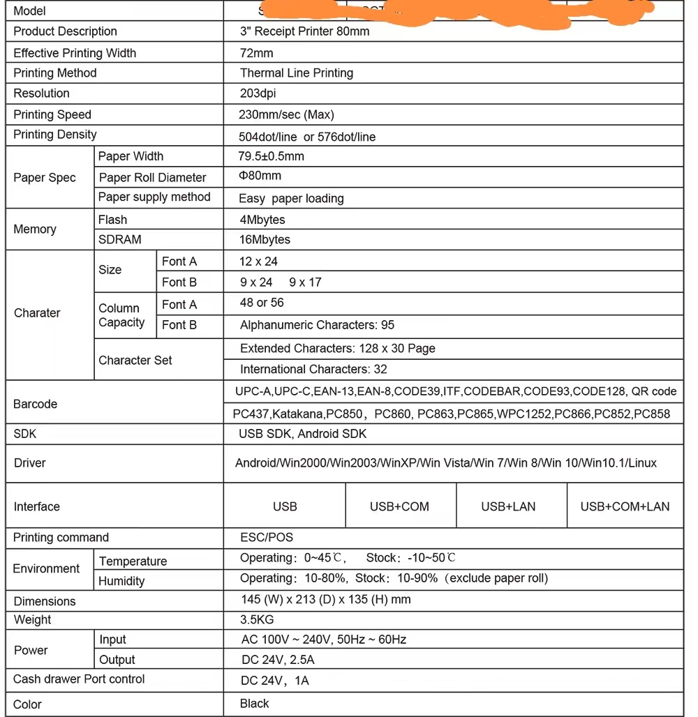 - Multiple interfaces: USB+SERIAL+LAN+RJ11, RJ11 -24V (cash drawer ), We offer USB cable, but DO NOT offer serial cable & LAN cable.